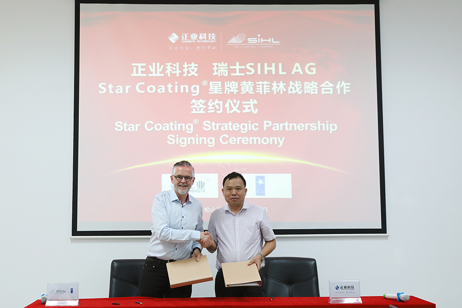 623日上午,廣東正業科技股份有限公司(股票代碼:300410)與業內知名公司瑞士SIHL AG 旗下Star Coating® 星牌黃菲林繼續簽訂戰略合作協議,進一步深化加強合作,共同擁抱中國電子信息市場的巨大機遇。