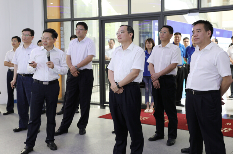 在董事長徐地華的陪同下,袁寶成副省長一行參觀了正業科技展廳。徐地華董事長向袁寶成副省長詳細介紹了我司發展歷程、產品線布局以及智能制造戰略規劃。