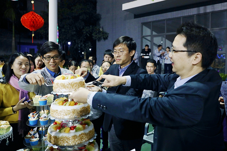 正業科技二十周年系列活動——“歡聚一堂,共慶雙旦”暨第四季職工生日會于2017年12月28日晚上在公司籃球場隆重舉行,技術中心總監梅領亮、市場中心總監徐同、董事會秘書王巍、管理中心總監黃洪輝、人力資源總監嚴敏升與正業科技總部500多名員工一起,共同歡度了這個開心難忘的夜晚。